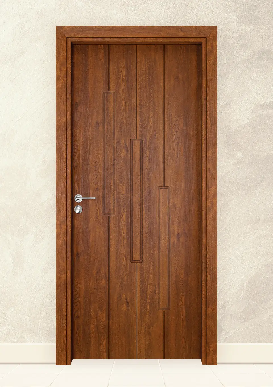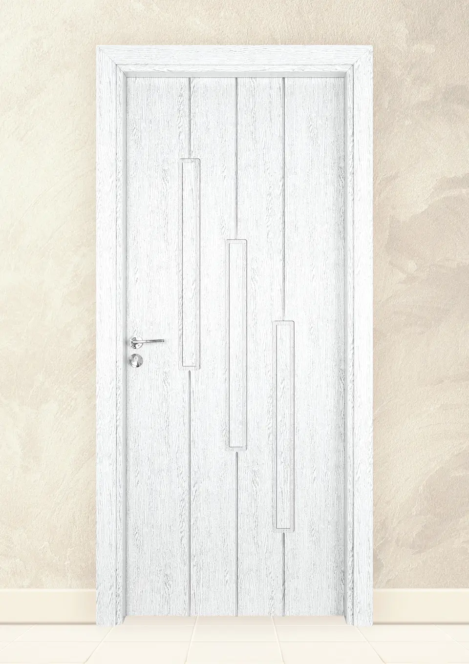 * Включва крило, каса за зид от 70 до 130мм, плаващи первази за двете страни, иноксова дръжка тип розетка, секретна брава, патрон с 3 ключа, насрещник, три лагерни панти, гумено уплътнение.